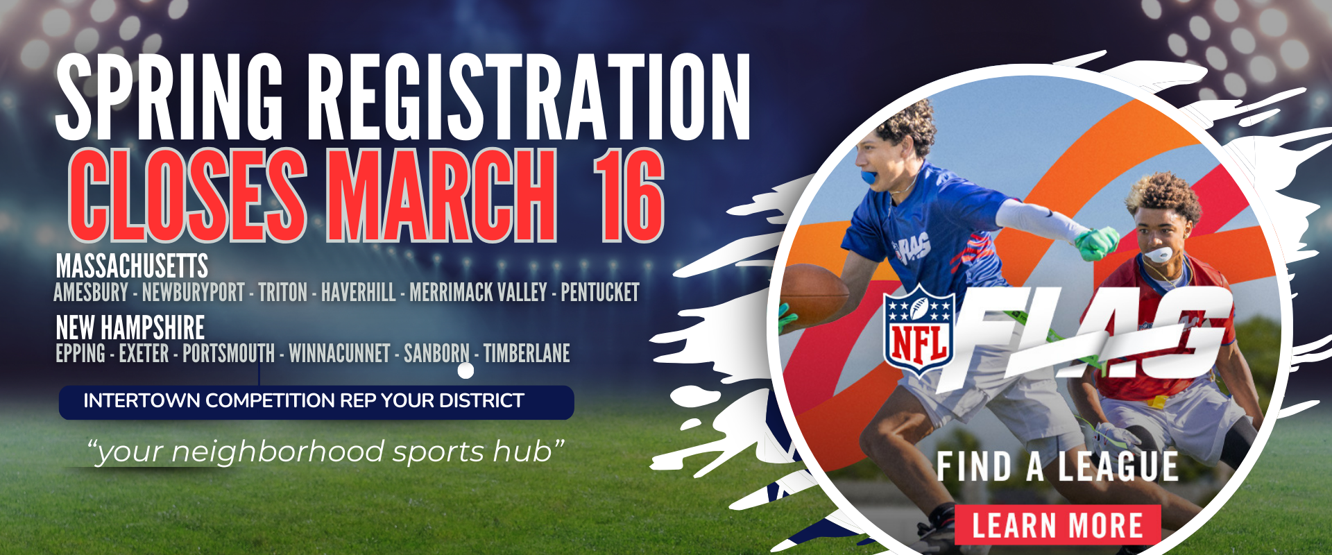 Exciting News! Our Flag Football Division is now FGS Flag, part of Future Gen Sports alongside MLS GO, NHL Street, and Rage Fastpitch. With the support of the New England Patriots, player experiences like Gillette halftime games, Pat Patriot visits, and raffles will continue! Visit www.playfuturegen.com to learn more. FGS Flag is hereāthe legacy continues.